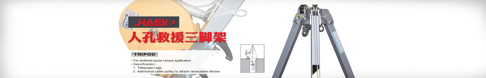 臺灣HARU-HD-240-35救援三腳架多功能鋁合金起重支架,應用在一般的人孔、下水道等狹窄的作業場所,電信電力及海上救援和戶外救援場所通用。HARU救援三角架采用方形鋁合金材質管,伸縮式設計可調整高低放置范圍。